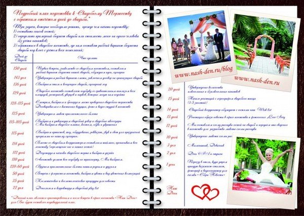 සෑම දෙයක්ම නිවැරදිව සැළකිල්ලට ගැනීම වැදගත්ය. මෙන්න අපි විවාහ උත්සවයක් ගැන කතා කරනවා! නඩු, නියෝග, මිලදී ගැනීම් මගේ හිස තුළ තබා ගත යුතුය. එවැනි සුළිසුළං තත්ත්වයක දී ඔබට යම් වැදගත් විස්තරයක් මැකී යෑම පුදුමයක් නොවේ. එමනිසා, විවාහයක් සඳහා සැලසුම් කිරීම ආරම්භ කළ යුතු අතර, “තොගයේ” “සැලකිය යුතු” කාලයක් සහිතව – මාස හයක් පමණ.